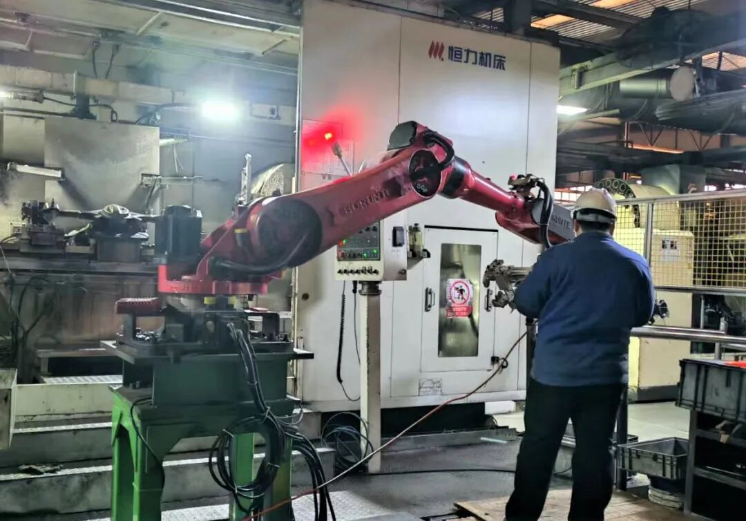 底盘车间桥壳焊接B线的卧式加工中心此前依赖人工上下料,桥壳零件重达20KG,不仅效率低下,还存在安全隐患。
