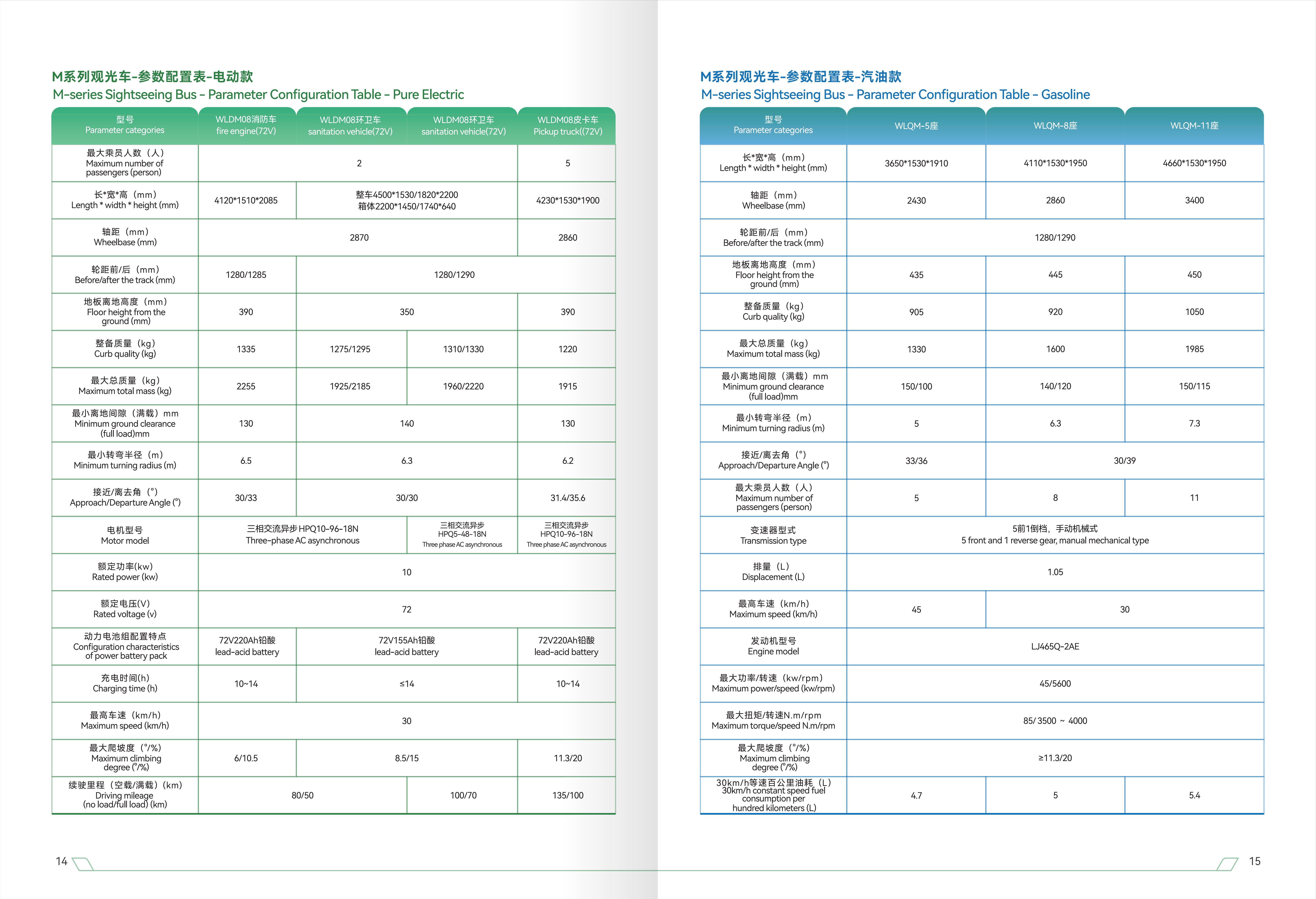 M系列观光车是以五菱微车的底盘为基础开发的观光车,沿袭五菱微车灵活轻便的特性。外观时尚、节能,适用于地势平坦、路途较短的景区、园区、车站、机场等封闭区域。